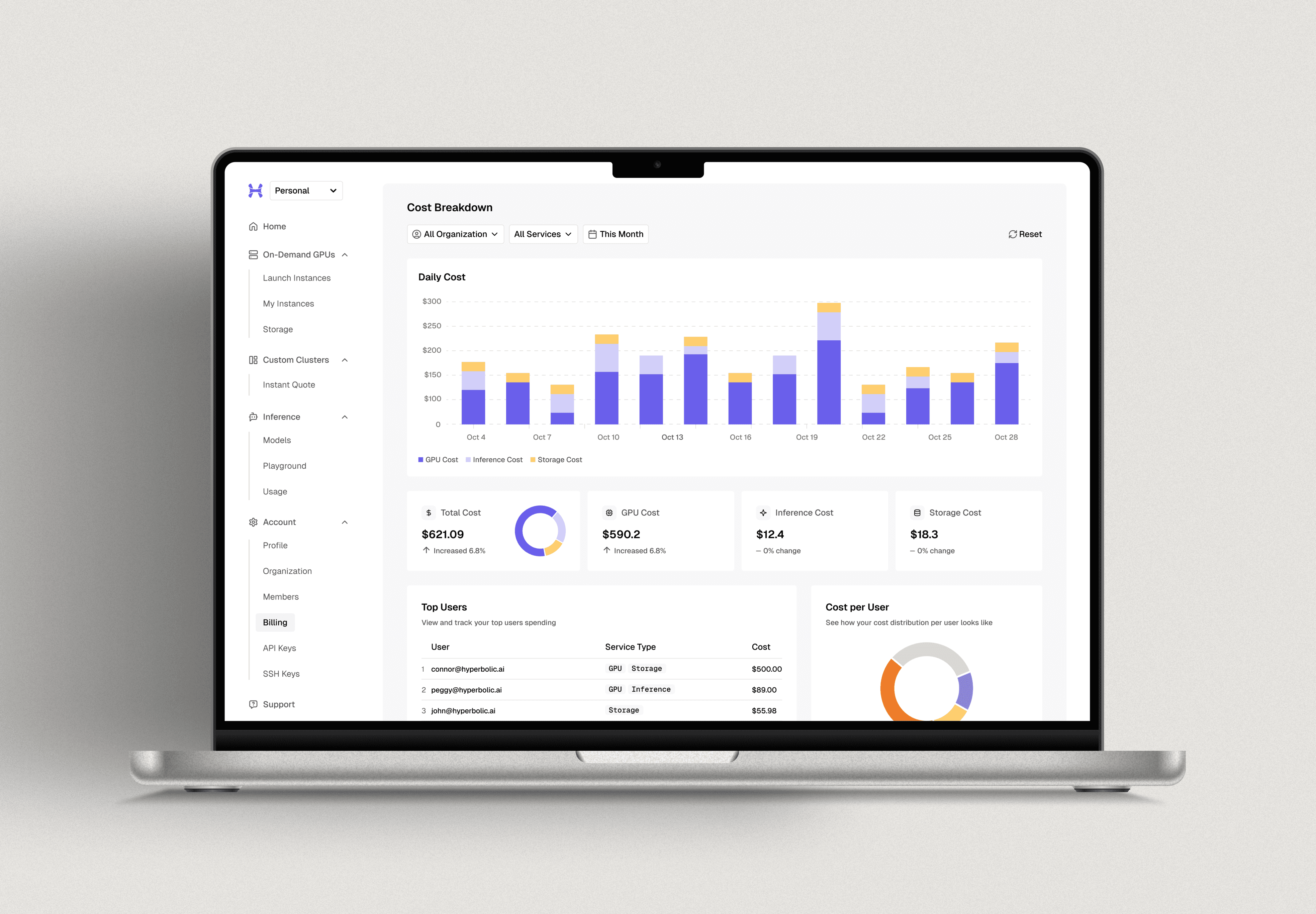 At scale, GPU spend compounds quickly. The analytics page provides organizations with continuous visibility into usage and cost, enabling informed operational decisions as workloads grow.
