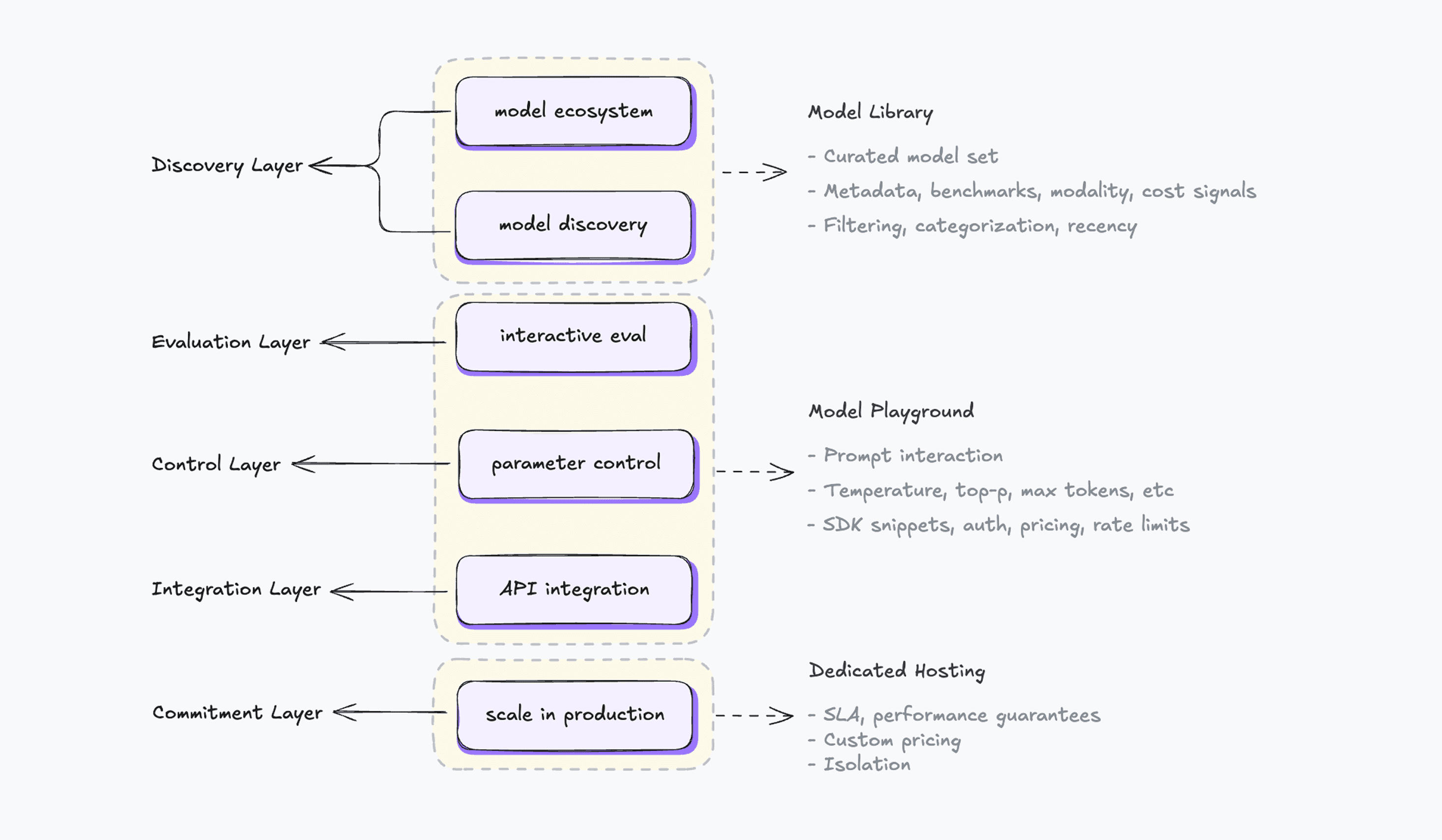 Rather than treating inference as a single endpoint, I modeled it as a lifecycle that spans model selection, experimentation, and production use.