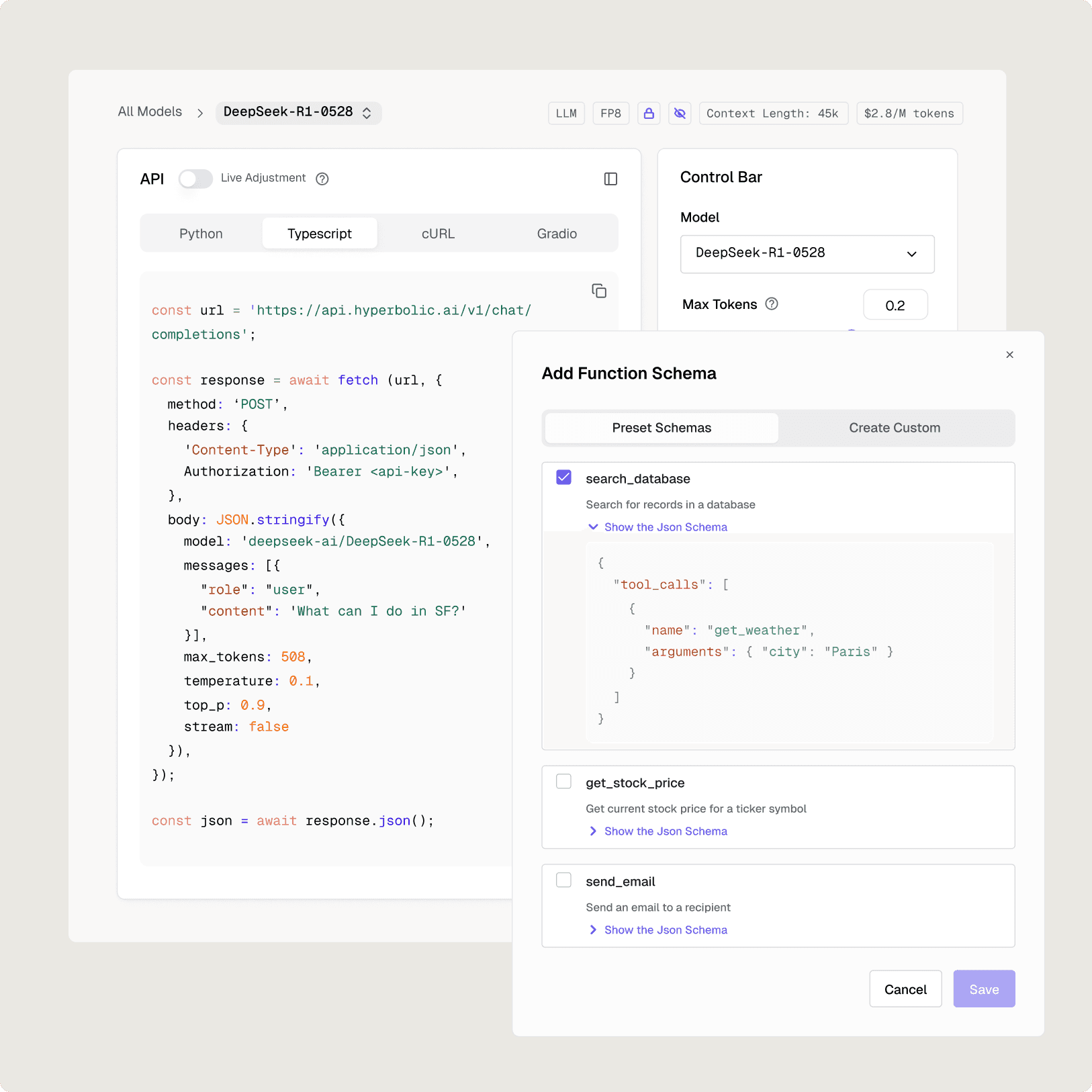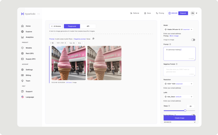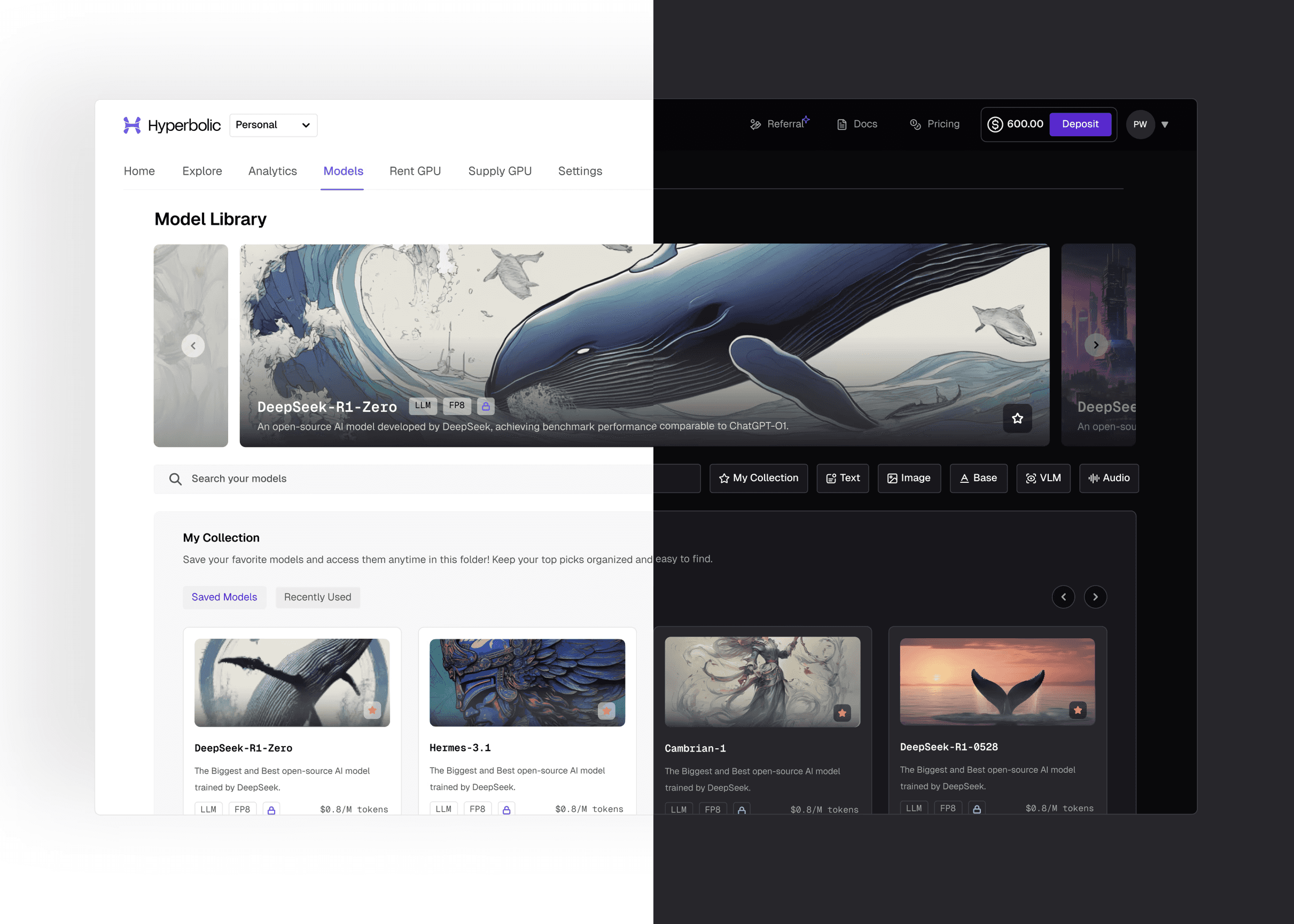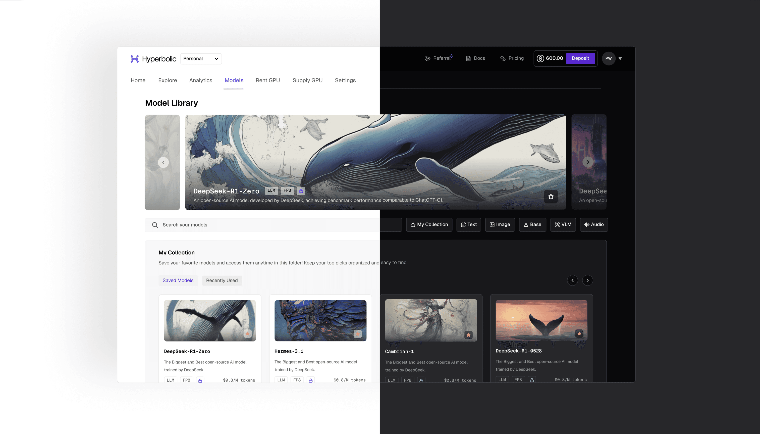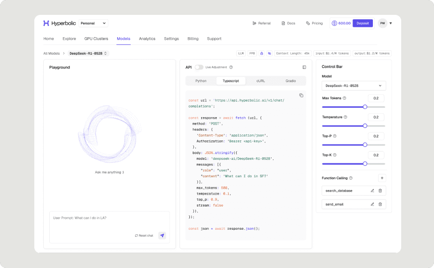 Hyperbolic’s serverless inference platform curates leading models based on benchmarks and community signals, presenting them in a structured library that enables discovery, comparison, and experimentation in minutes.